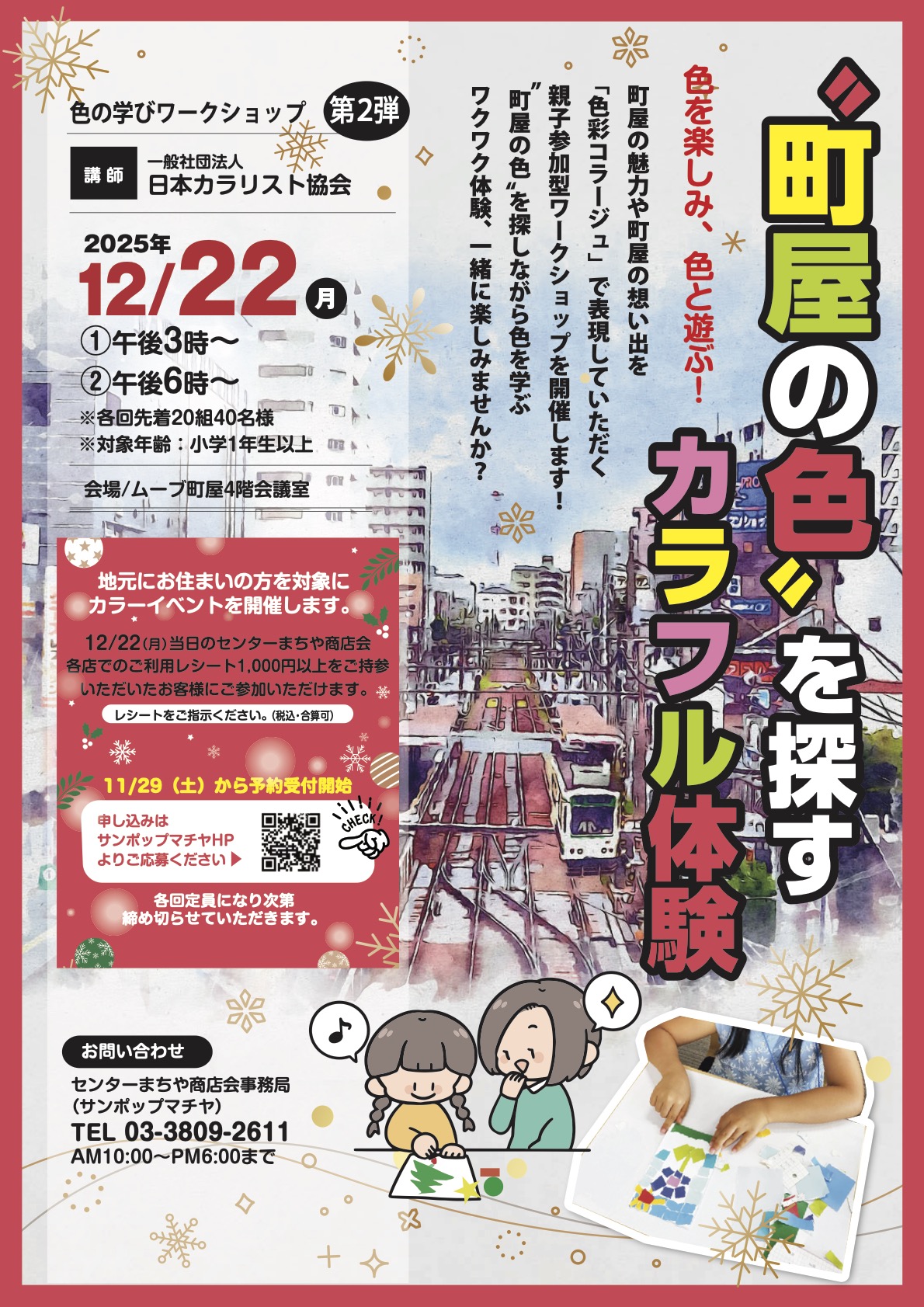地元にお住まいの方を対象に、カラーイベントを開催いたします。12月22日(月)当日、センターまちや商店会各店でご利用されたレシート1,000円以上(税込・合算可)をご持参いただいたお客様にご参加いただけます。