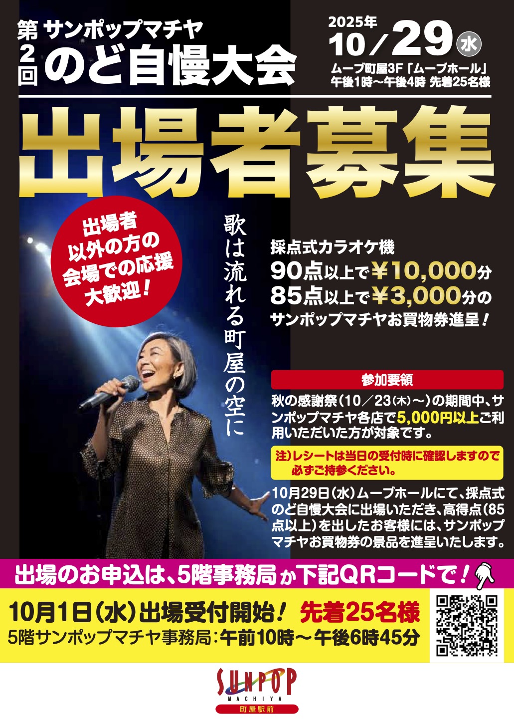 第2回サンポップマチヤのど自慢大会を開催いたします。